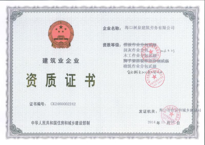 ??跇淙ㄖ趧沼邢薰境闪⒂?011年,公司位于??冢淝吧硎且患覍I建筑施工隊,自2004年即開始在海南從事建筑勞務施工。自成立至今,公司已經擁有一支科學管理、質量過硬、能打硬仗,搶工期的專業隊伍。能獨立承擔大中型工業與民用建筑 、室內外裝修、各類機電設備安裝工程。代表工程有??跒I海華庭、三亞時代海岸T01/02/04/05棟高層、合肥東海花園二期、陵水富力灣B區高層、三亞金中海(酒店)、瓊海大印經典花園、海口環球海景大酒店(四星級酒店,在建中)、陵水珍珠大廈(五星酒店)、海口萬達廣場、美蘭機場二期。